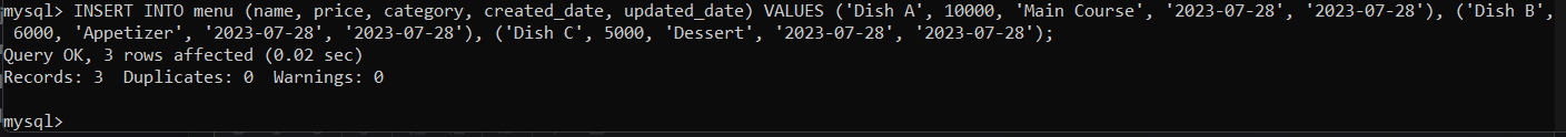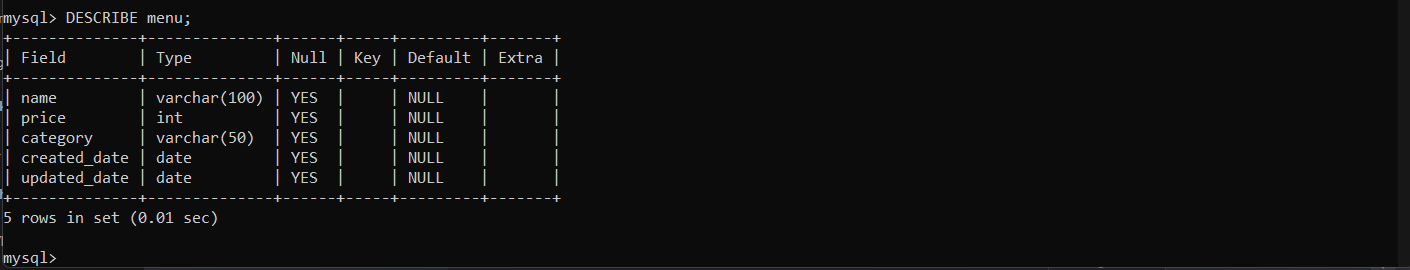 table_name မှာ menu ကိုအစားထိုးလိုက်ပါမယ်။