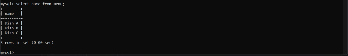 select name from menu;