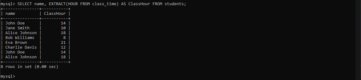 class_time column ထဲက hour ကိုပဲဆွဲထုတ်ကြည့်ရအောင်။