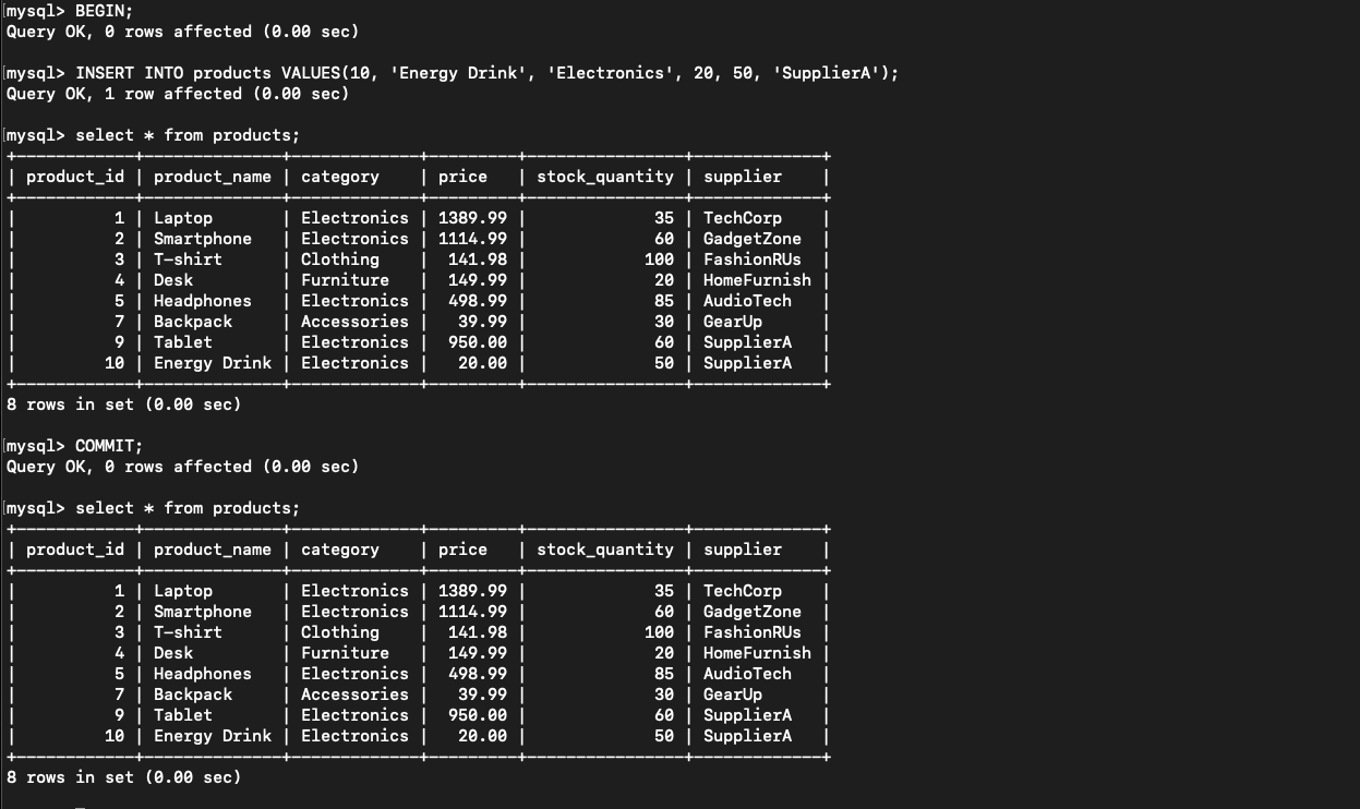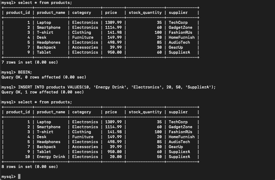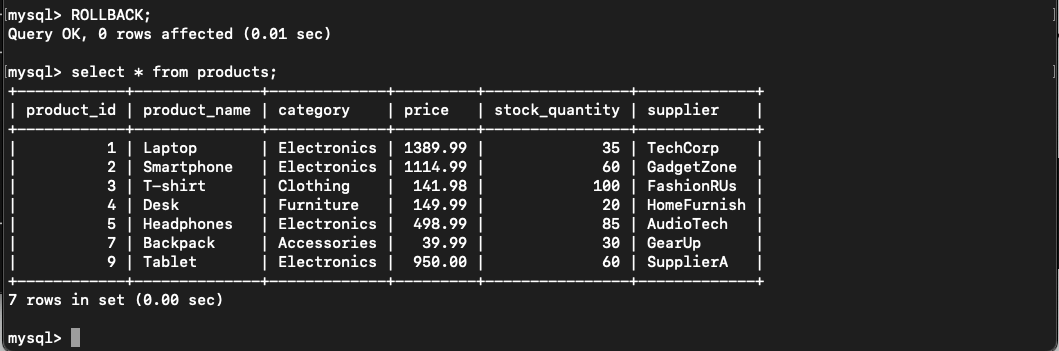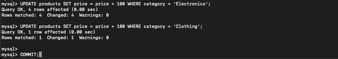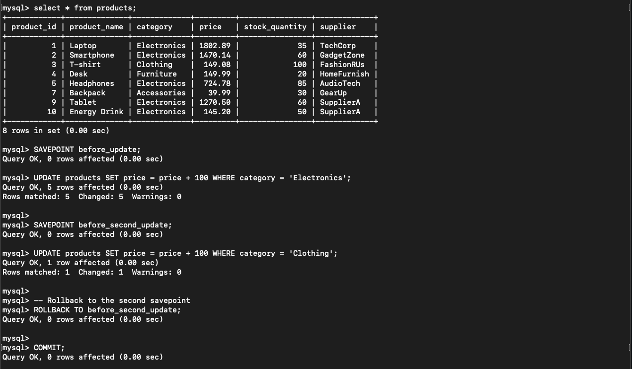 ဒီ transaction မှာဆို before_second_update အထိပြန် ROLLBACK သွားပြီး clothing category အတွက် effect ဖြစ်သွားတော့မှာမဟုတ်ပါဘူး။