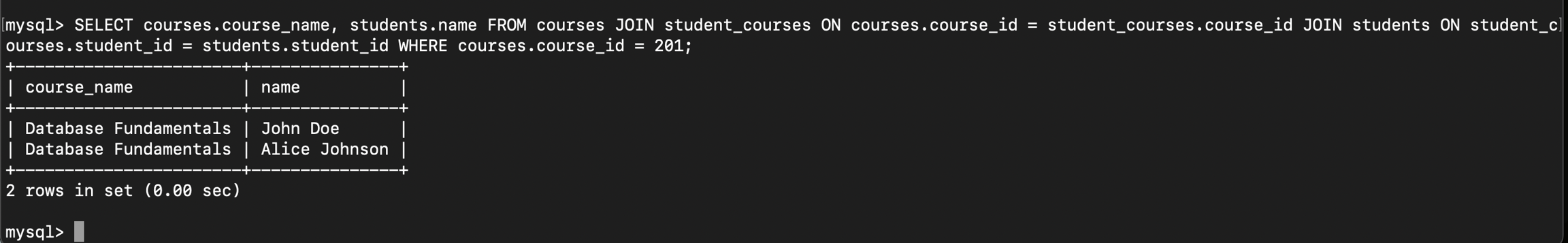 course_id 201 မှာတက်ရောက်နေတဲ့ students တွေကိုလည်းထုတ်ကြည့်နိုင်ပါတယ်။