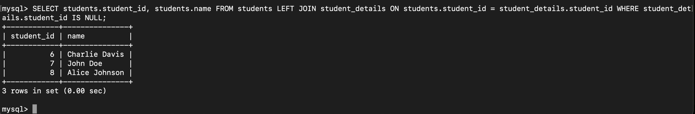 student_details ဘက်မှာ records မရှိတဲ့ students တွေကိုထုတ်ကြည့်ပါမယ်။